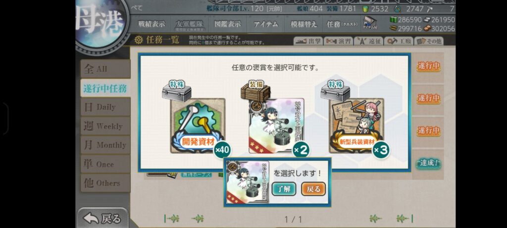 選択報酬取り忘れた…